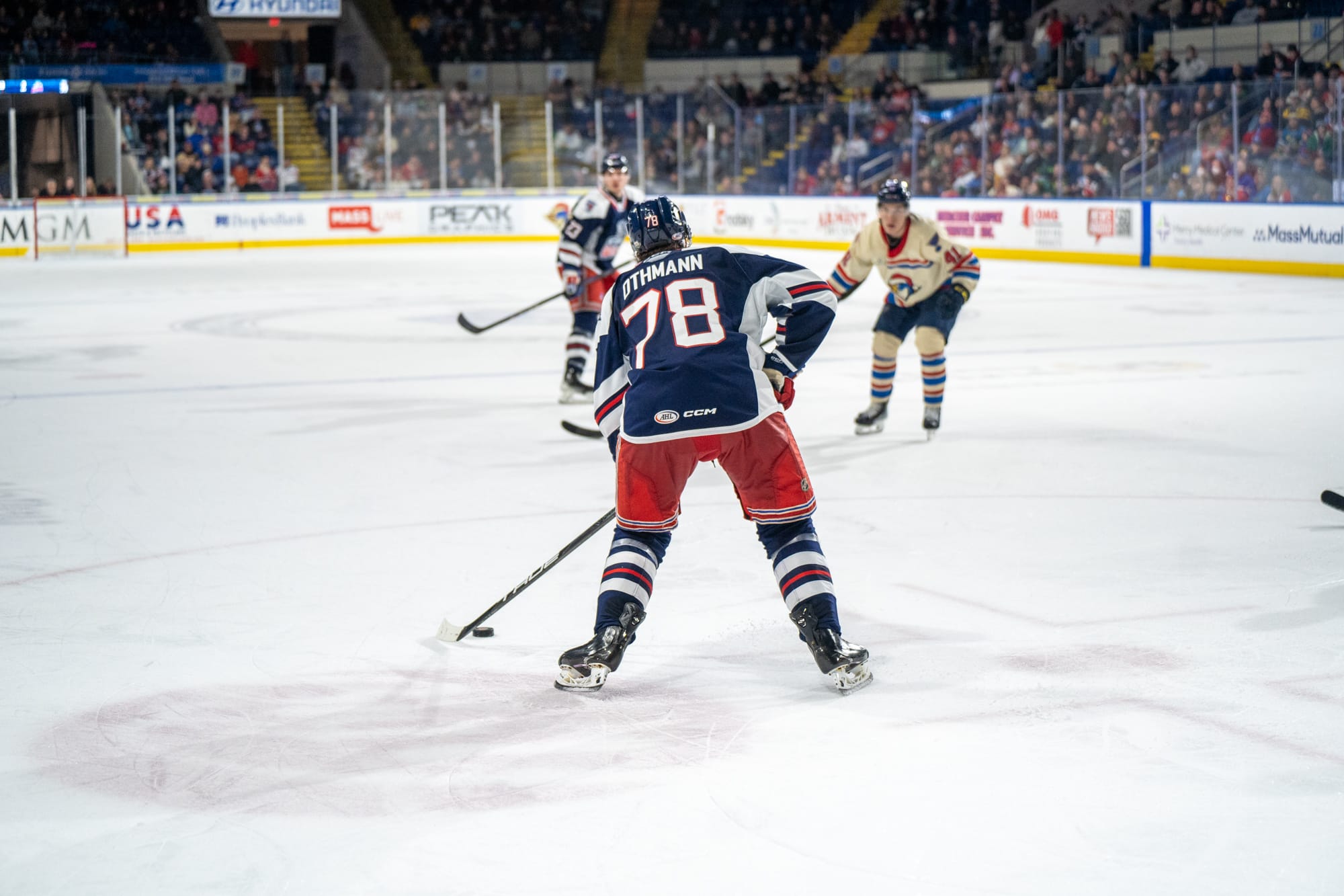 "I felt good [being back on the ice]," Othmann told me after Friday's contest, a 5-2 loss to Springfield. "We put in a lot of work over the last two months…not just myself, but training staff, development staff, and skills coaches. Our whole organization put in a lot of work to try to get me back as fast as possible."