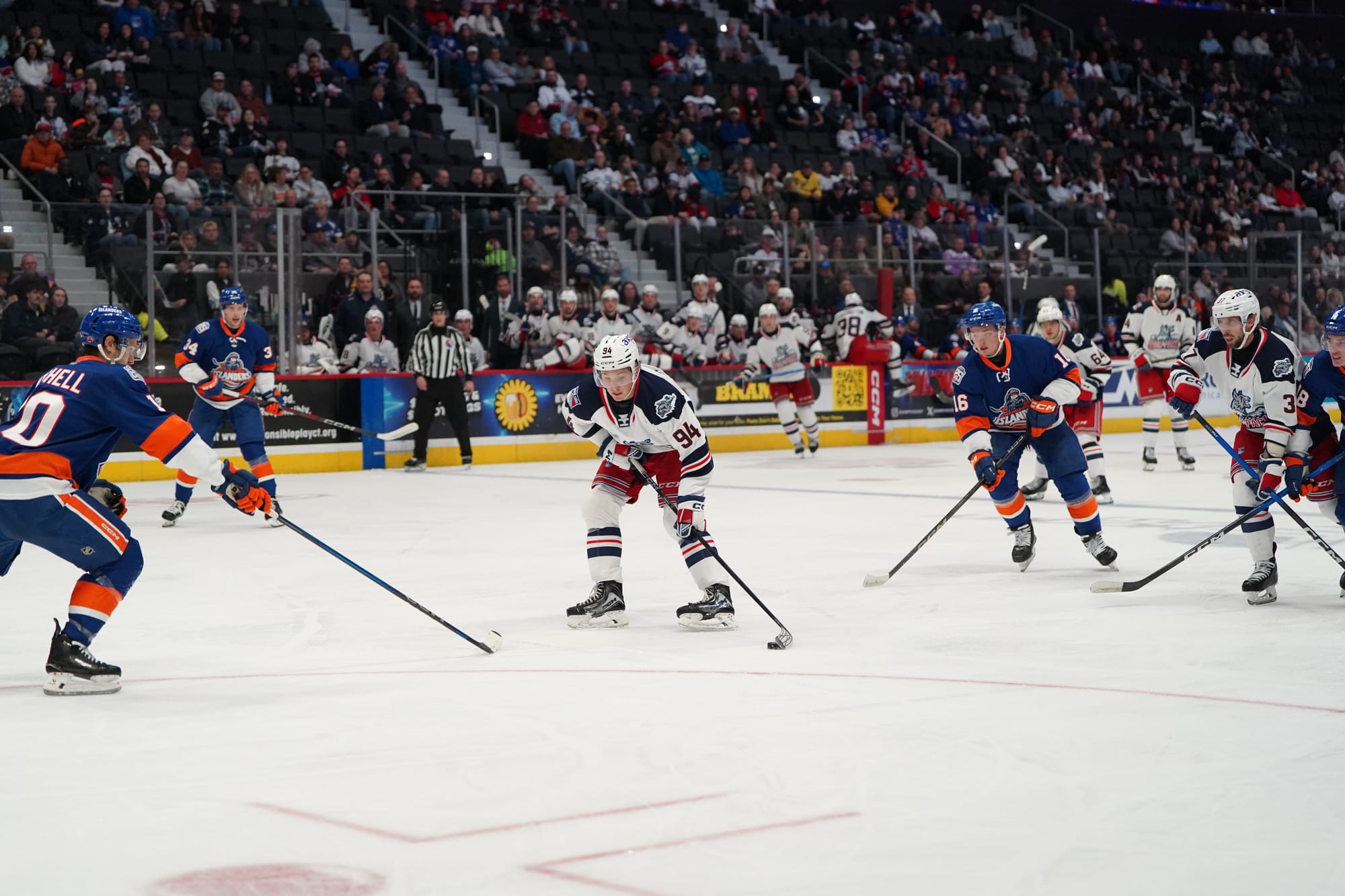 The Islanders took a lead they'd never lose just 3:38 into the contest. Joey Larson gained control of the puck and skated into the Hartford zone. Larson cut towards the net and roofed a shot over the shoulder of Dylan Garand to put the Islanders in front.