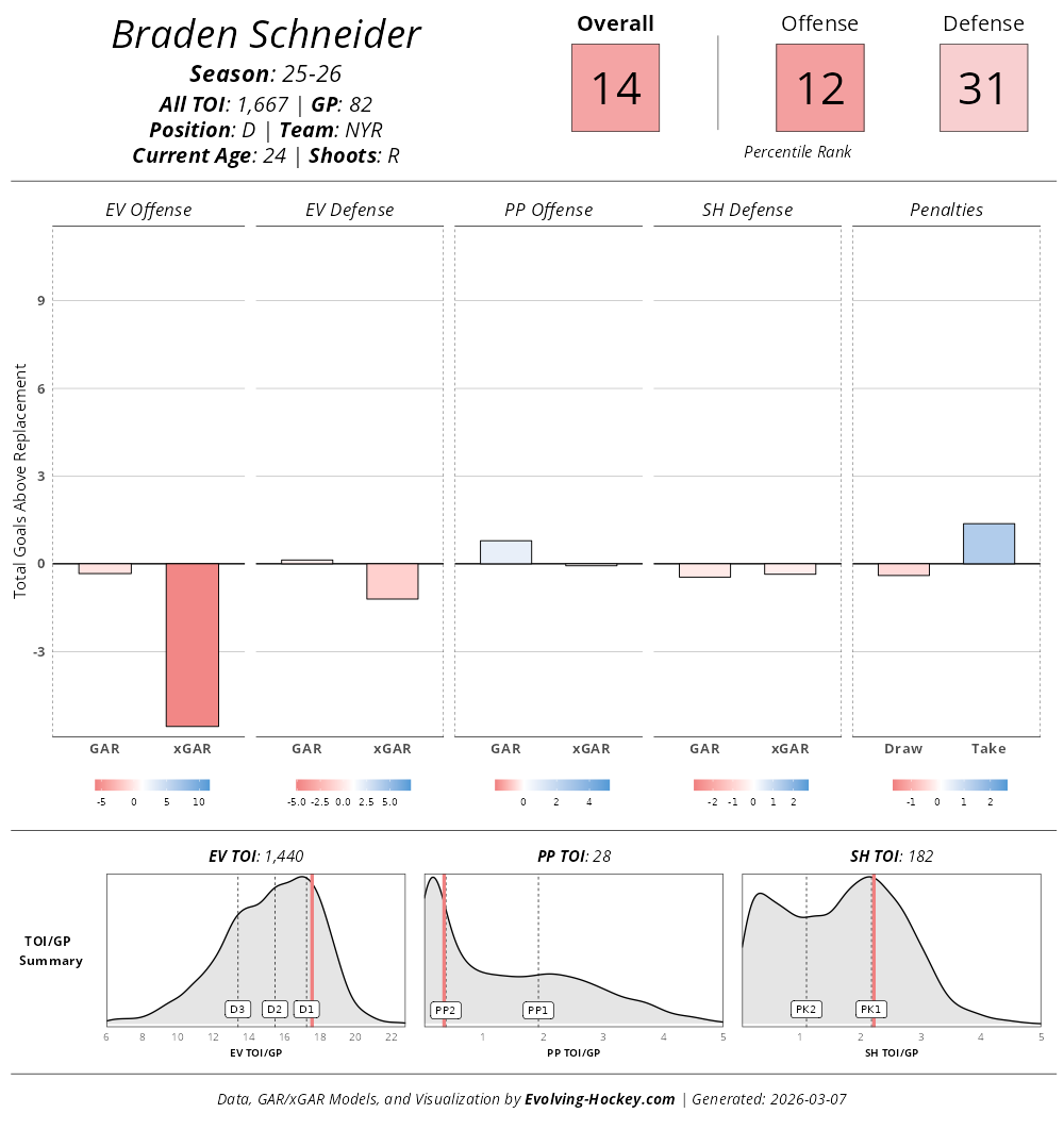 While Schneider may not be having the prettiest season, in a lost season, giving the young defenseman more chances is the right move. Against the Maple Leafs, Schneider had the primary assist on the goal Will Cuylle tipped in. With Schneider's future up in the air, the remainder of this season will determine what the Rangers have in their former first-round pick.