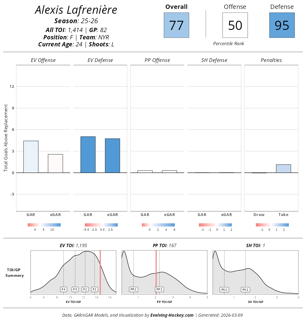 Lafrenière has been subject to criticism this season, as many hoped he would have a bounce-back season. While it is safe to say he will not be able to live up to the first overall pedigree that has followed him his whole career, Lafrenière still has the tools to be a productive player in the NHL. As the Rangers enter their retool, general manager Chris Drury will have to decide if Lafrenière is part of his long-term plan.