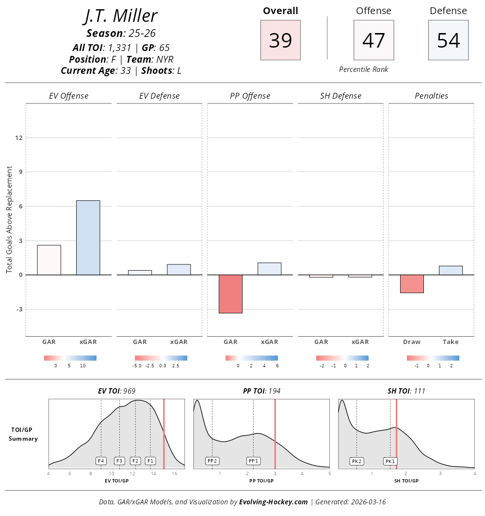 It certainly hasn't been the year the Rangers' captain had hoped for, but J.T. Miller has made it clear he is around for the long haul. Miller has battled injury on and off all season, which has been a large part as to why he has had a down season. As he looks to lead the team back to being a playoff contender, Miller needs to return to the player the Rangers thought they were getting when they handed him the "C."