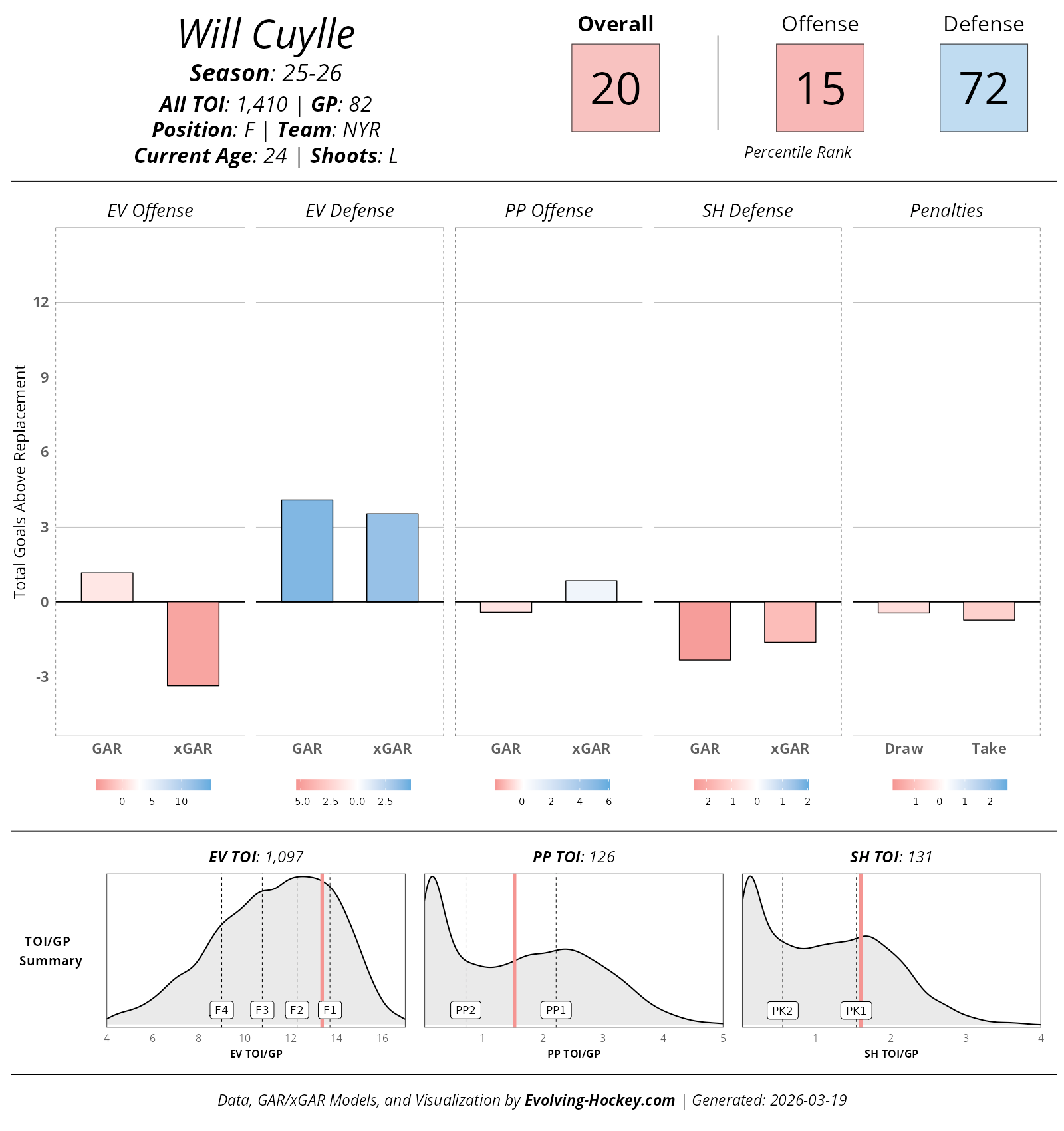 Even though this season hasn't been what many hoped for from Cuylle, progression is not always linear, and he is not the only player having a down season. As the final games play out, hopefully Cuylle will find his footing, as he is still only 24 and under contract for another season at under $4 million.