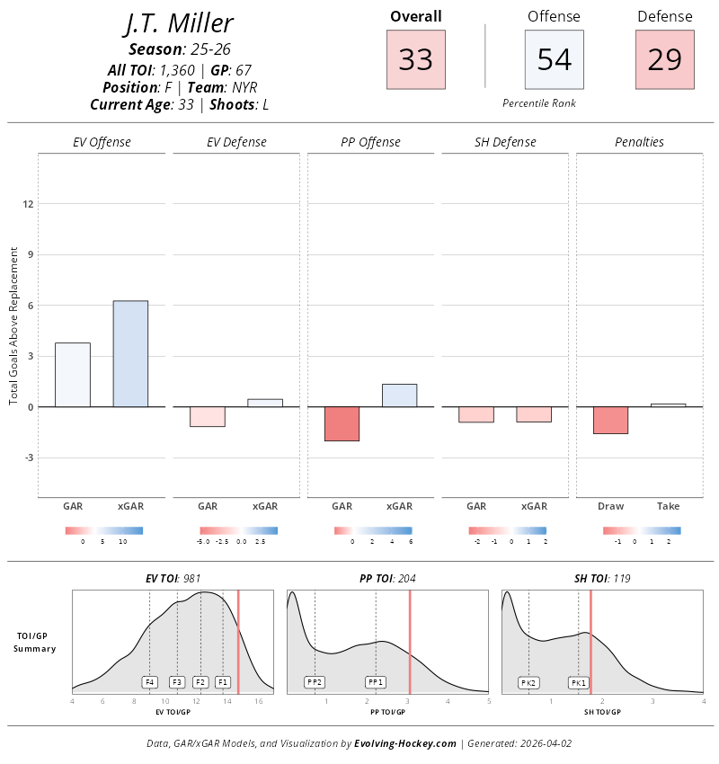 While the Rangers' captain has been underwhelming for the vast majority of the season, J.T. Miller is currently riding a four-game point streak, including a three-point night against the Toronto Maple Leafs. While it would have been nice to get this level of production earlier in the season, it at least shows the potential for a bounce back next season.