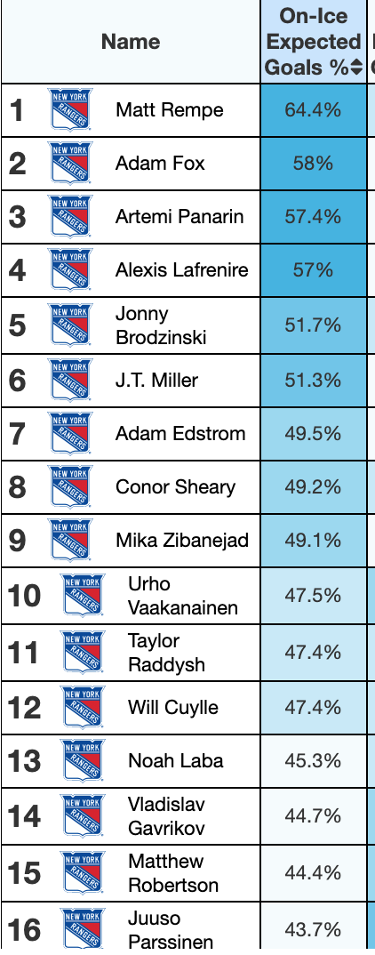 MoneyPuck has Parssinen with a 43.7% Expected Goals %, while Miller’s is 51.3%.
