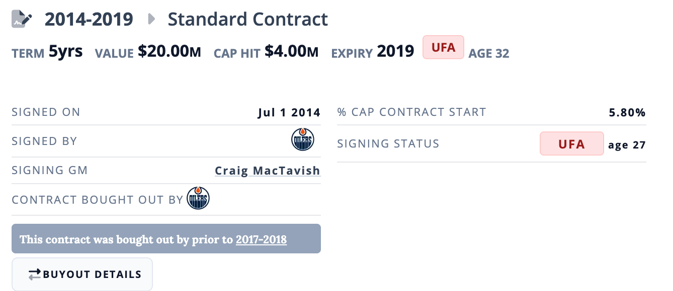 Like most Rangers legends, Benoit Pouliot would go on to sign a contract that would eventually be bought out. Fortunately, it was the Edmonton Oilers who had the pleasure of buying him out of the final two years of his five year deal. His NHL career lasted only one more season in Buffalo, meaning that he wasn’t even in the NHL in the final season of that contract. That contract was offered by then Oilers GM and Rangers legend Craig MacTavish: