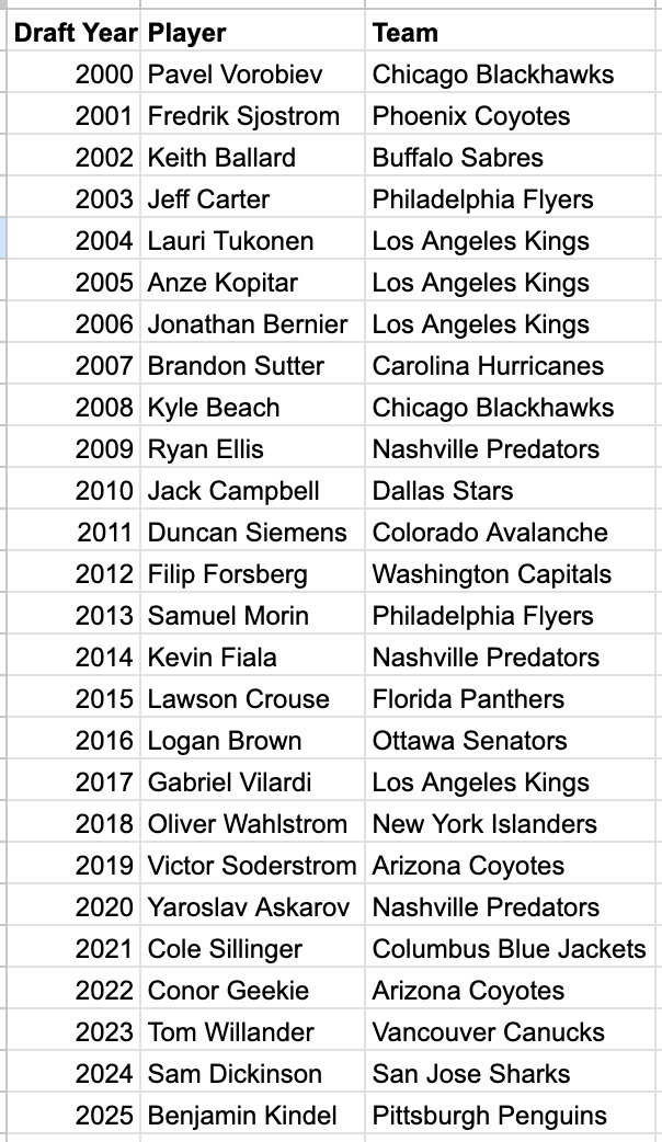 It was said that Liam Greentree in closer to being an NHLer, versus a mystery box pick. As of right now, the Los Angeles Kings are sitting outside of the playoffs and have the 11th worst record in the NHL by points percentage. Here is a list of the 11th overall picks in the NHL draft since the year 2000 (including Rangers legend Fredrik Sjostrom):